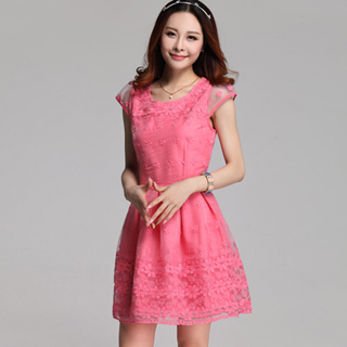 【菟絲花】歐根紗定位花刺繡寬鬆A字大碼連衣裙(大尺碼)