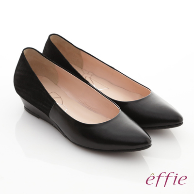 effie 通勤百搭 真皮拼接金箔絨面楔型跟鞋 黑