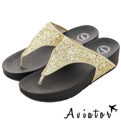 Aviator-韓國空運-正韓製亮片晶漾舒壓夾腳拖-金