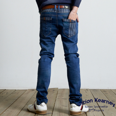 - 買褲送外套↘前後褲管立體刷紋+口袋小方格拼接,今年一定要擁有的丹寧牛仔褲