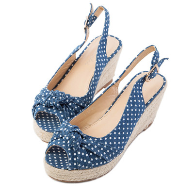 Chichi別緻復古 單寧扭結魚口麻編楔型跟涼鞋-深藍色商品網址: