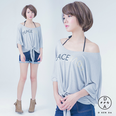 ORENDA-印字寬鬆慵懶綁結上衣-麻灰