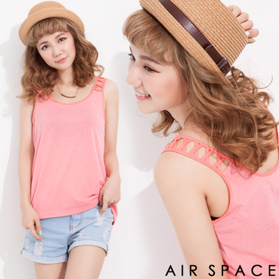 AIR SPACE 交叉鏤空肩帶無袖背心上衣(俏甜紅)