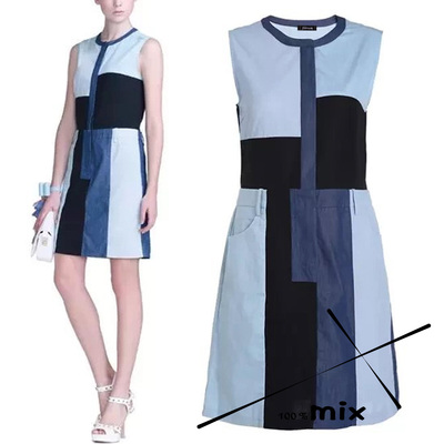方塊撞色拼接假兩件牛仔洋裝 100%MIX