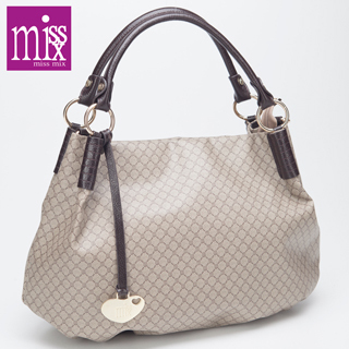 【miss mix】真皮經典圖騰抓褶大容量包 M2-370BR(甜可可)