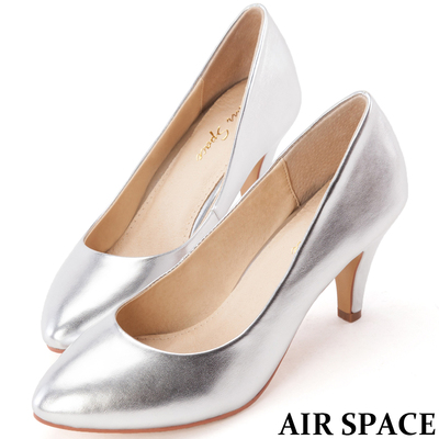 AIR SPACE★沁樣甜美~糖果色系素面微尖頭高跟鞋-銀