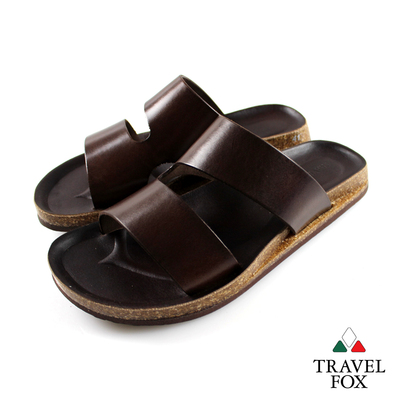 Travel Fox(男)★波羅的海之星 挖背硬牛皮後空拖鞋 - 咖