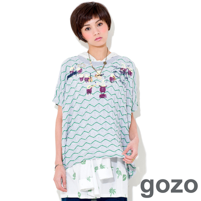 • GOZO學院風格波浪動物印花上衣 (中灰色)