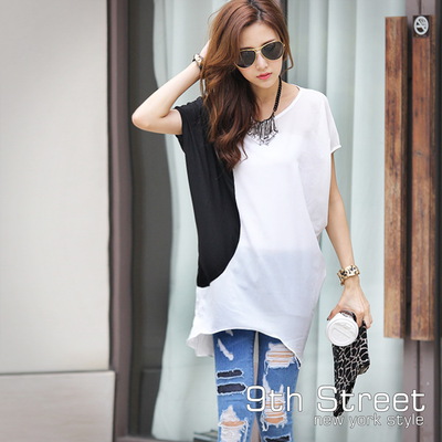 9th Street 韓版拼接U型下擺長版上衣