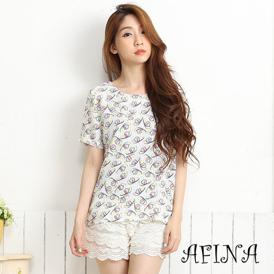 印花圖案雪紡上衣-夾腳拖白 AFINA