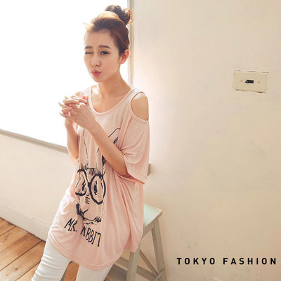 東京著衣 眼鏡兔塗鴉挖肩寬版T恤(共四色)