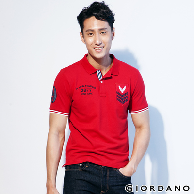 GIORDANO男裝運動風撞色拼接POLO衫(10絲帶紅)-01014023
