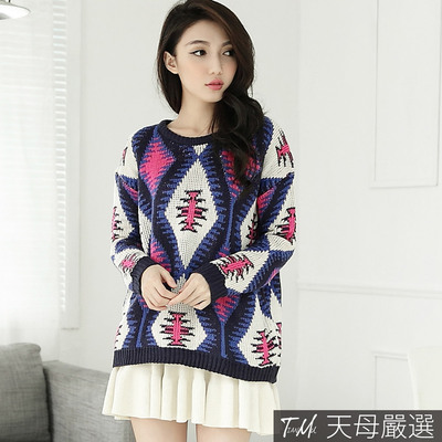 【天母嚴選】時髦生活?圓領菱格花紋厚針織衫(桃紅)商品網址: