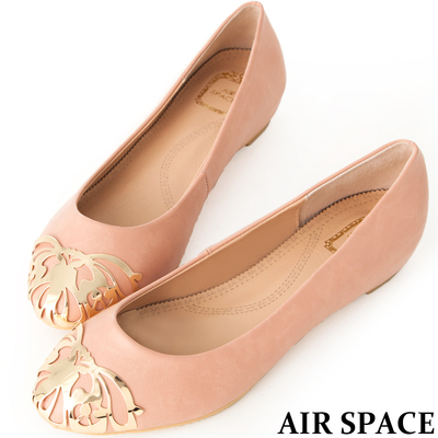 AIR SPACE★優雅時尚~金屬鏤空雕花內增高娃娃鞋-粉