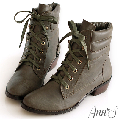 Ann'S即興出遊.格子內裡澎澎綁帶短靴*墨綠商品網址: