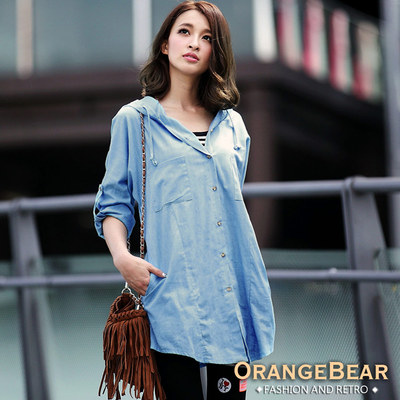 【OB嚴選】連帽背面英文繡字長版襯衫/外套?共二色商品網址: