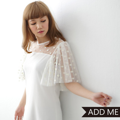 ADD ME 透膚點點網紗短洋裝(天使白-共2色)