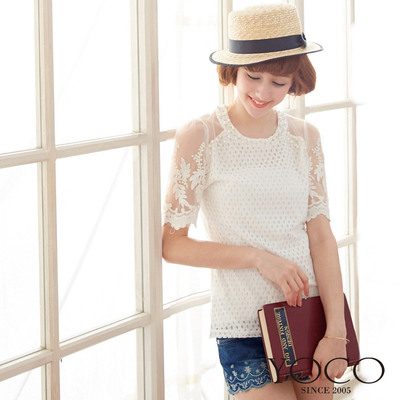 東京著衣-YOCO 綴珠透肌網紗蕾絲上衣(共二色)
