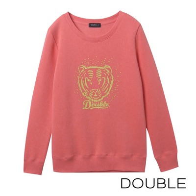【DOUBLE】MIT 老虎頭設計印圖上衣-女款(粉橘S-L)