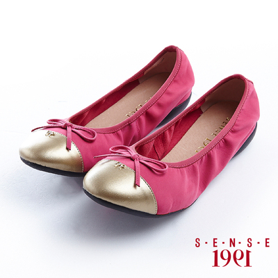 SENSE1991 優雅時尚 金屬感蝴蝶結拼接娃娃鞋-桃紅