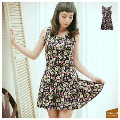 直到網友Michael介紹我上網買了一件彩色碎花滿版傘狀洋裝 深藍色 Catworld,想不到品質和剪裁真的和夜市OR路邊攤差很多!!