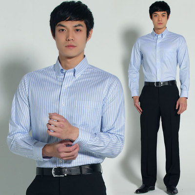 極品西服 高雅條紋釘領角釦商務襯衫(藍白)_SW210-53