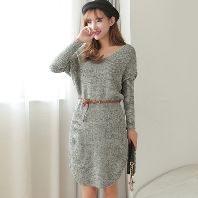 韓版蝙蝠袖弧形下擺簡約內搭長款針織衫(灰色)-Joli-neon商品網址: