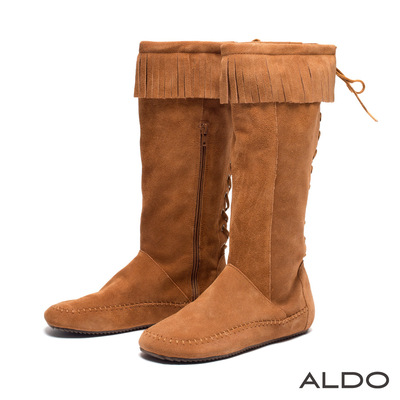 ALDO 浪漫異國風麂皮流蘇後側綁帶式長筒靴~甜美棕商品網址: