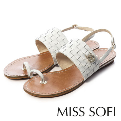 MISS SOFI-牛皮編織亮彩夾腳涼鞋-米白