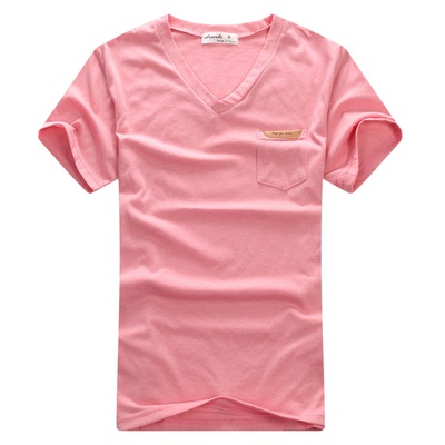 商品名稱:加大尺碼,XL~3L,韓系V領真皮皮標口袋素面短袖上衣(八色)