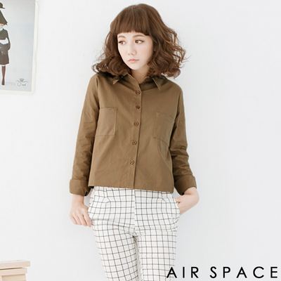 AIR SPACE 背繡字母雙口袋短版襯衫(個性咖)