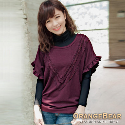 【OB嚴選】荷葉寬袖造型圓領上衣 別具巧思的荷葉邊飛鼠袖,
