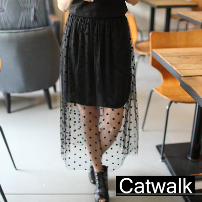 • 參考尺寸:腰圍:平量27公分(整圈22-37吋)、臀圍:平量51公分(整圈40吋)、全長:裙64公分 網83公分