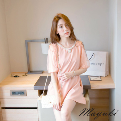 東京著衣-MAYUKI 綴珍珠玻璃紗袖洋裝(共三色)-4007534