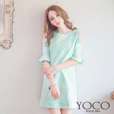 東京著衣-YOCO 糖果色露肩蕾絲傘狀洋裝-S.M(共二色)-4018921