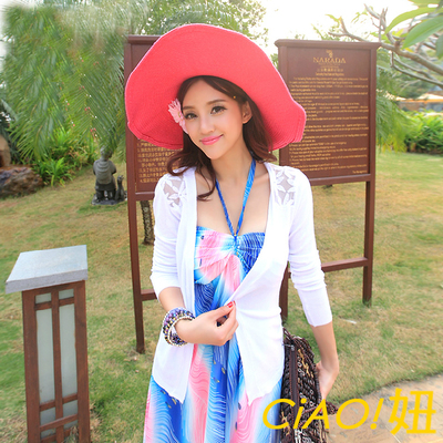 CiAO妞 holiday 透膚花朵網紗露背薄外套