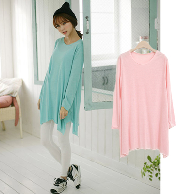 純色不規則裙擺長袖上衣(兩色) iFashion