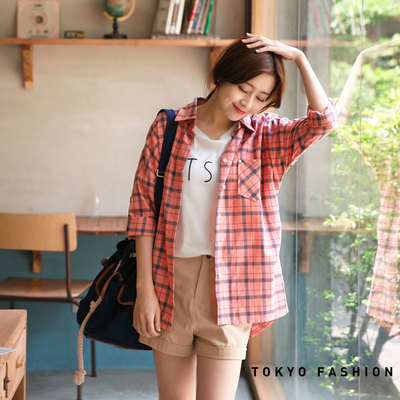 東京著衣 格紋釘扣棉襯衫(共三色)