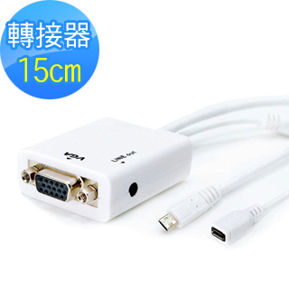 【Bravo-u】micro USB 公 對 VGA 母 audio MHL連接線15cm(附音源線_白)