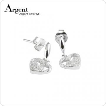 【ARGENT銀飾】微鑲鉑銀閃亮系列「晶鑽雙心(白K金)」 純銀耳環