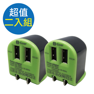 【i-Gear】AC轉USB 3.1A 雙USB旅充變壓器 二入促銷組(綠黑)