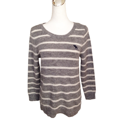 【A&F】女裝 現貨 後綁緞帶條紋長袖毛衣(灰)