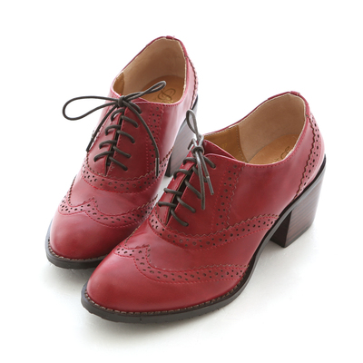 D+AF 英倫Vintage?復古皮革雕花牛津粗跟鞋*紅