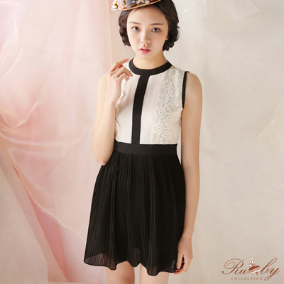 蕾絲拼接撞色百褶雪紡無袖洋裝-露比午茶商品網址: