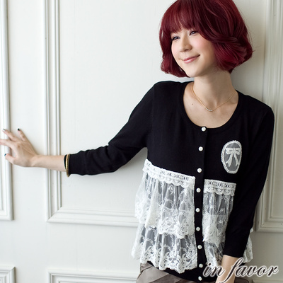 【in favor】專櫃 蕾絲蝴蝶結層次針織外套-氣質黑商品網址: