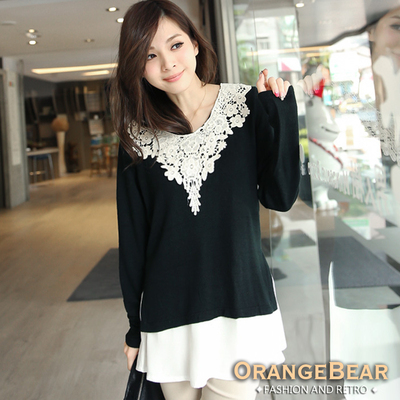 OB嚴選-蕾絲飾雪紡假兩件式上衣‧共二色