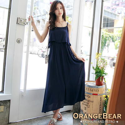 OB嚴選-細肩帶荷葉褶皺長洋裝?共二色