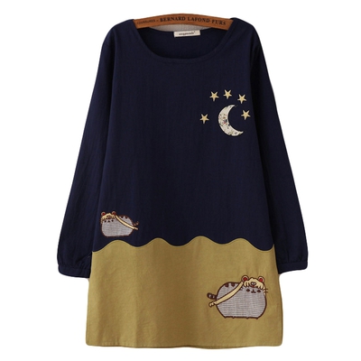胖吉貓拼色長袖洋裝(共三色)Fei Fei商品網址: