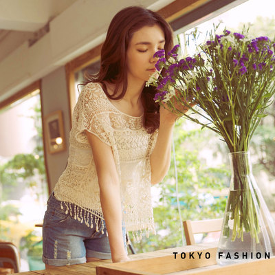 東京著衣 鏤空鉤花流蘇短罩衫(共一色)-3028922