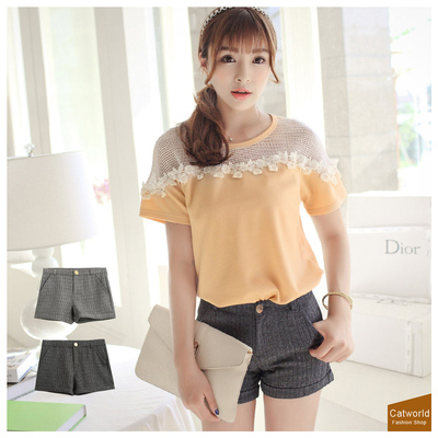 我覺得Catworld 後假口袋格紋反摺短褲共二色不僅穿起來合身舒適,自己感覺也變很有時尚的FU!!(哈哈哈!!!!)